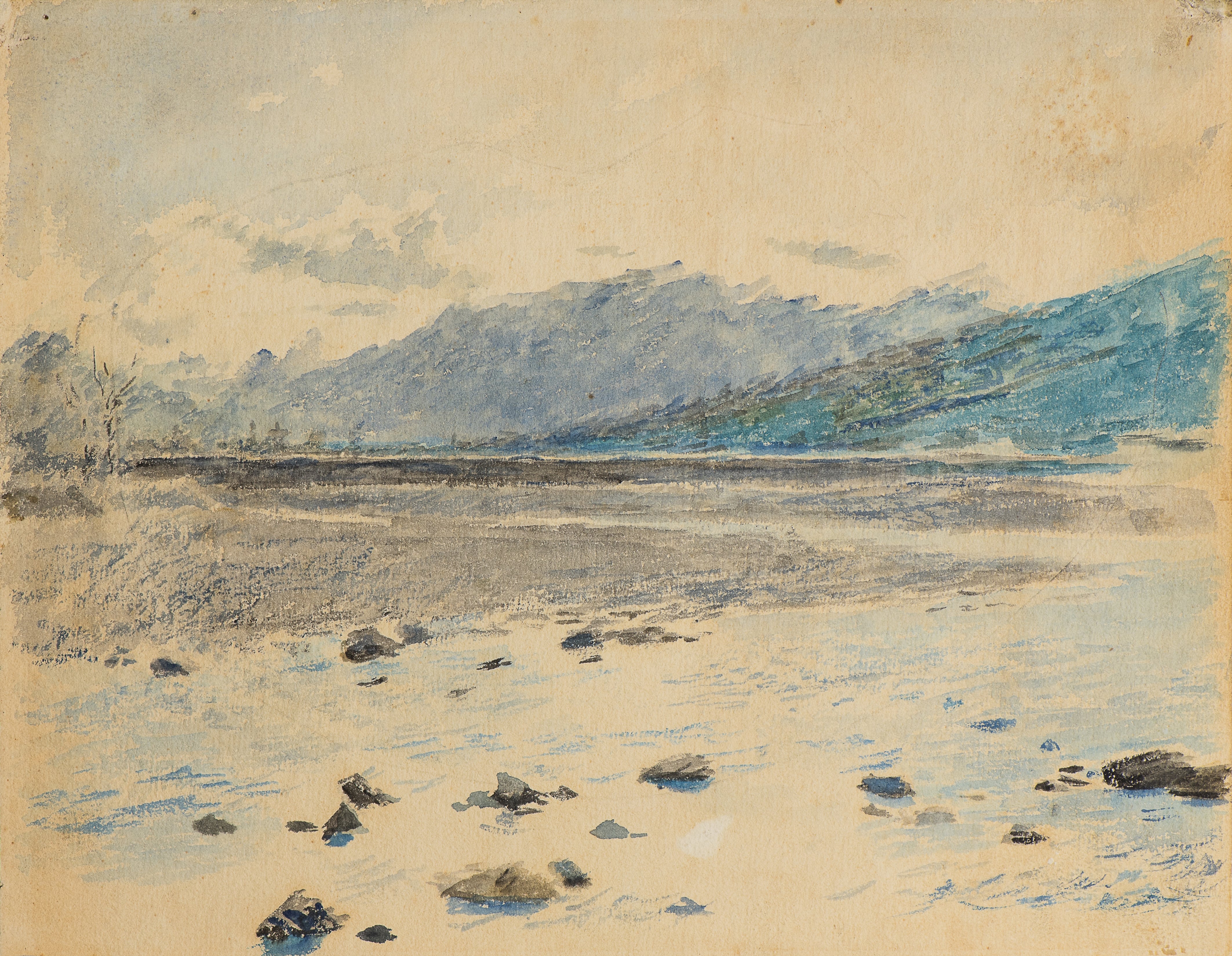 La mostra muove dai paesaggi di Daniele Ranzoni, maestro della Scapigliatura, di cui sono esposte tre opere tra cui lo Studio di paesaggio fluviale (1872), un acquerello colmo di luce, simile ad un’apparizione.