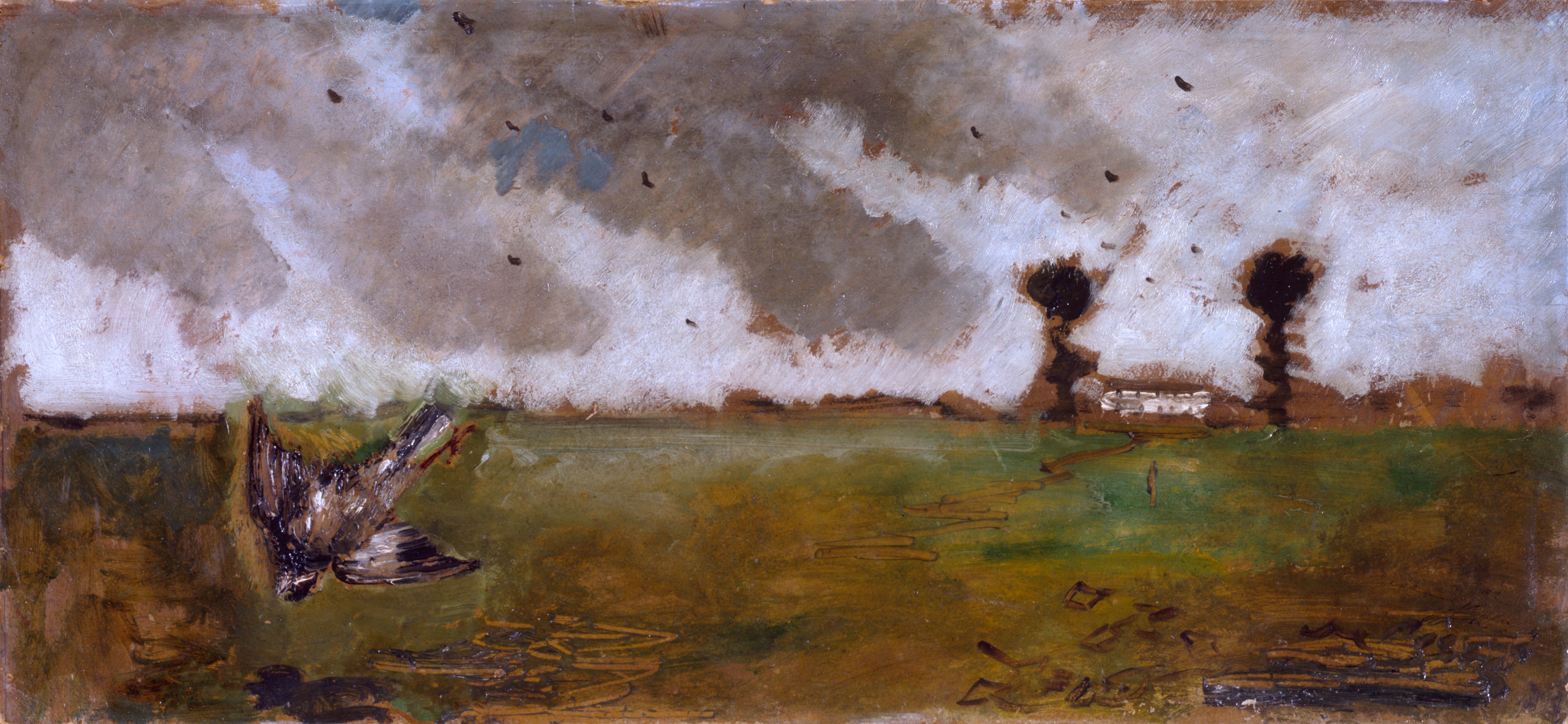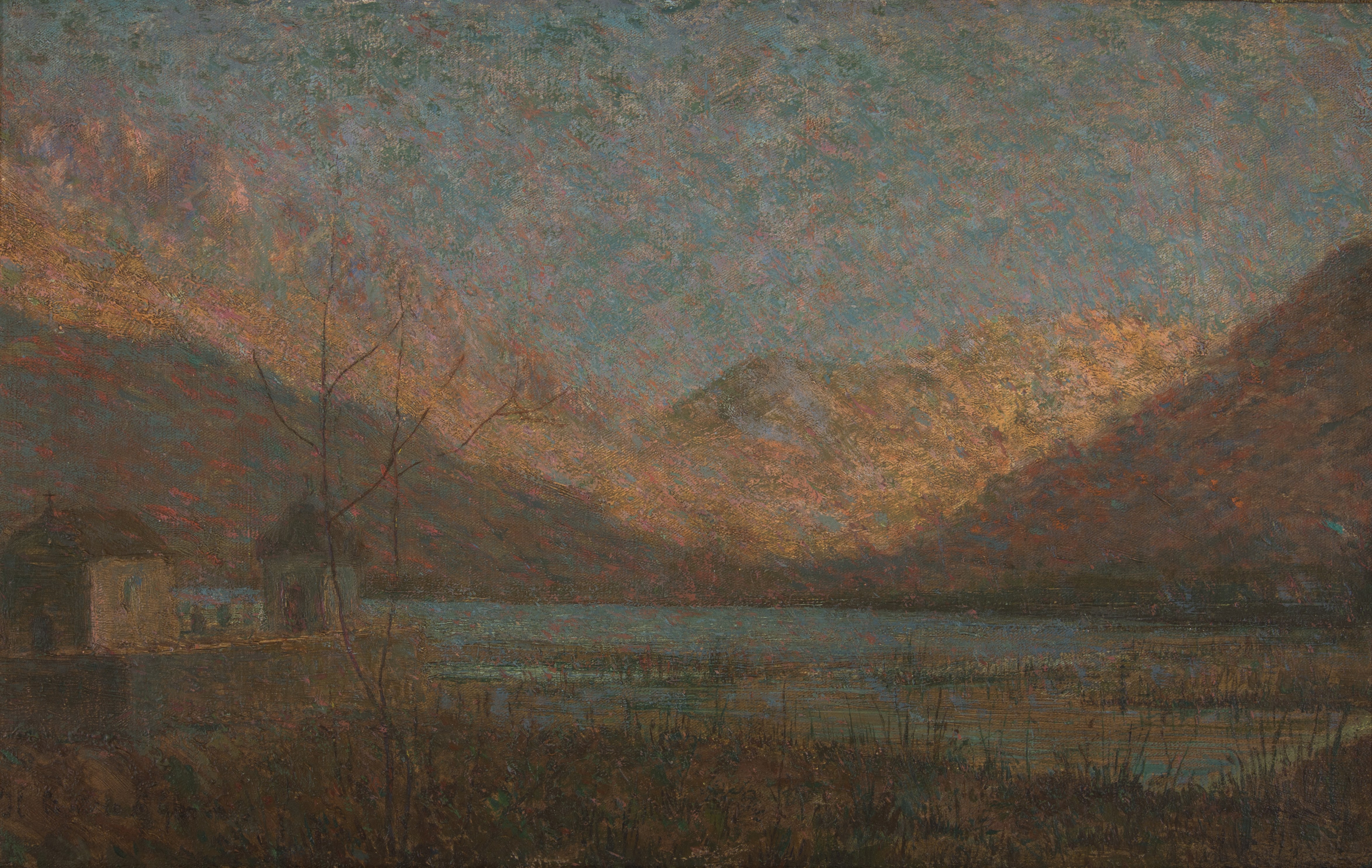 Dalla fine dell’Ottocento al tempo di guerra a tener viva una pittura di paesaggio sono soprattutto i divisionisti. Ecco dunque Vittore Grubicy con l’elegiaco e commosso Cimitero di Ganna, 1894, Cesare Maggi con il lirico trittico Neve (1908) e Nevicata (1908 e 1911), Carlo Fornara con lo scenario campestre de I due noci (1921) a cui si possono accostare Guido Cinotti con Marina (1910-1915) paesaggio di sola luce e colore e Clemente Pugliese Levi con l’altrettanto spirituale Cave di Alzo (1920).