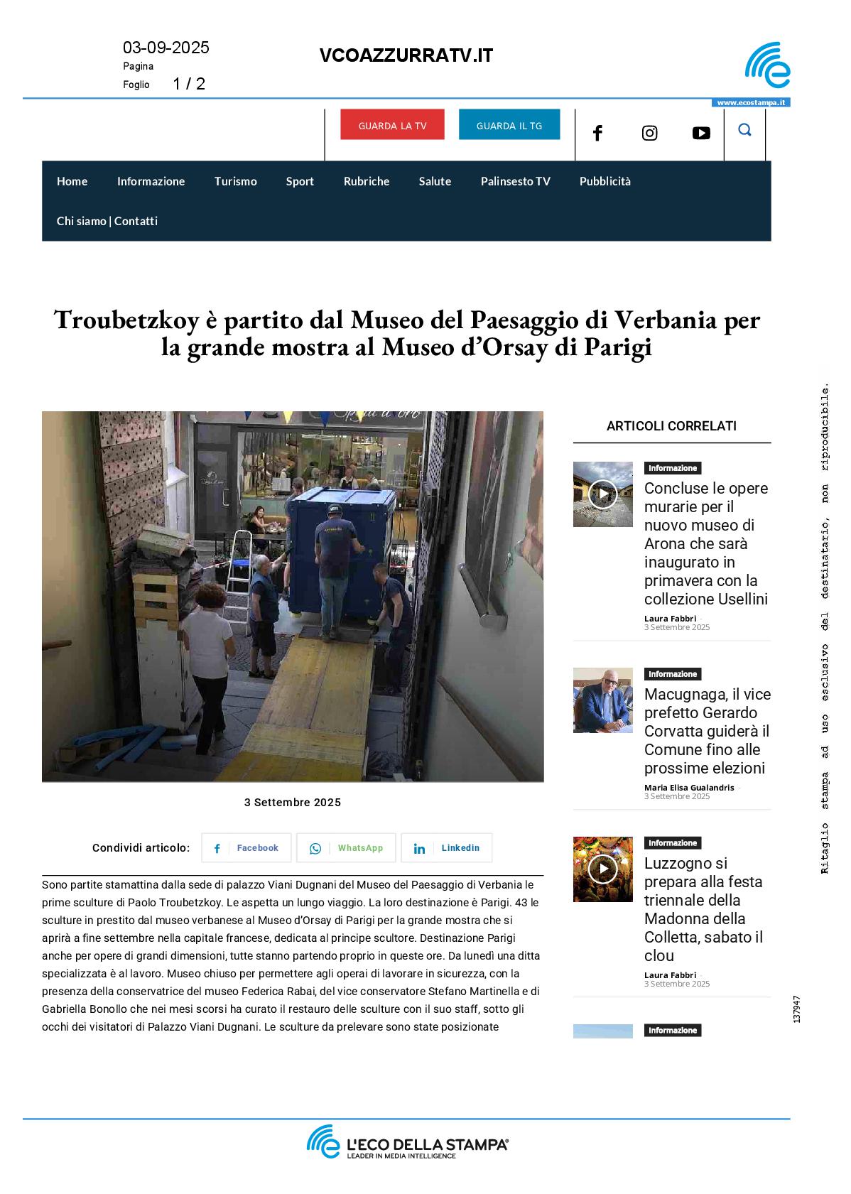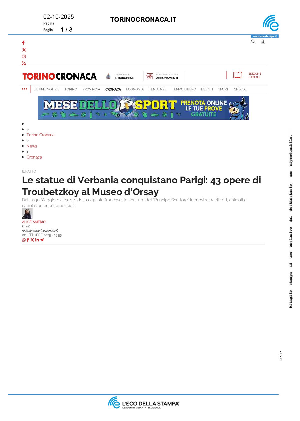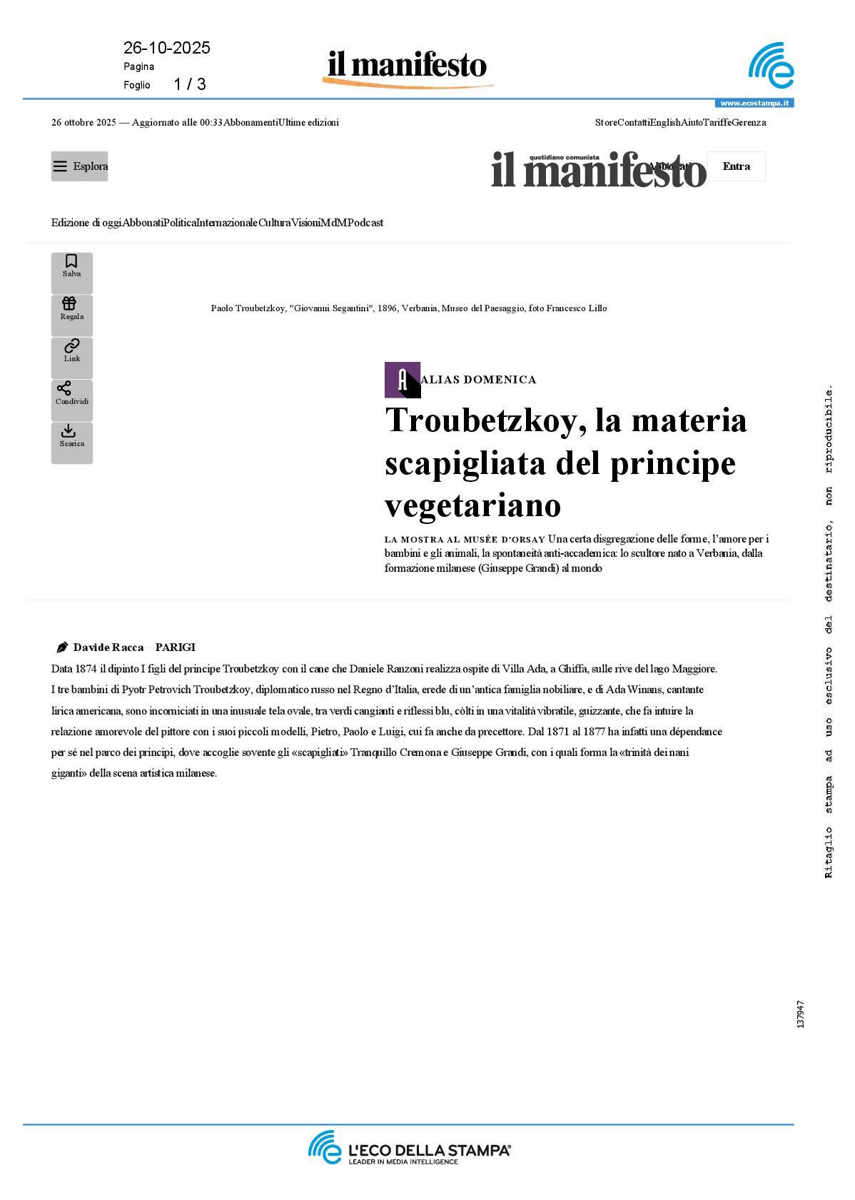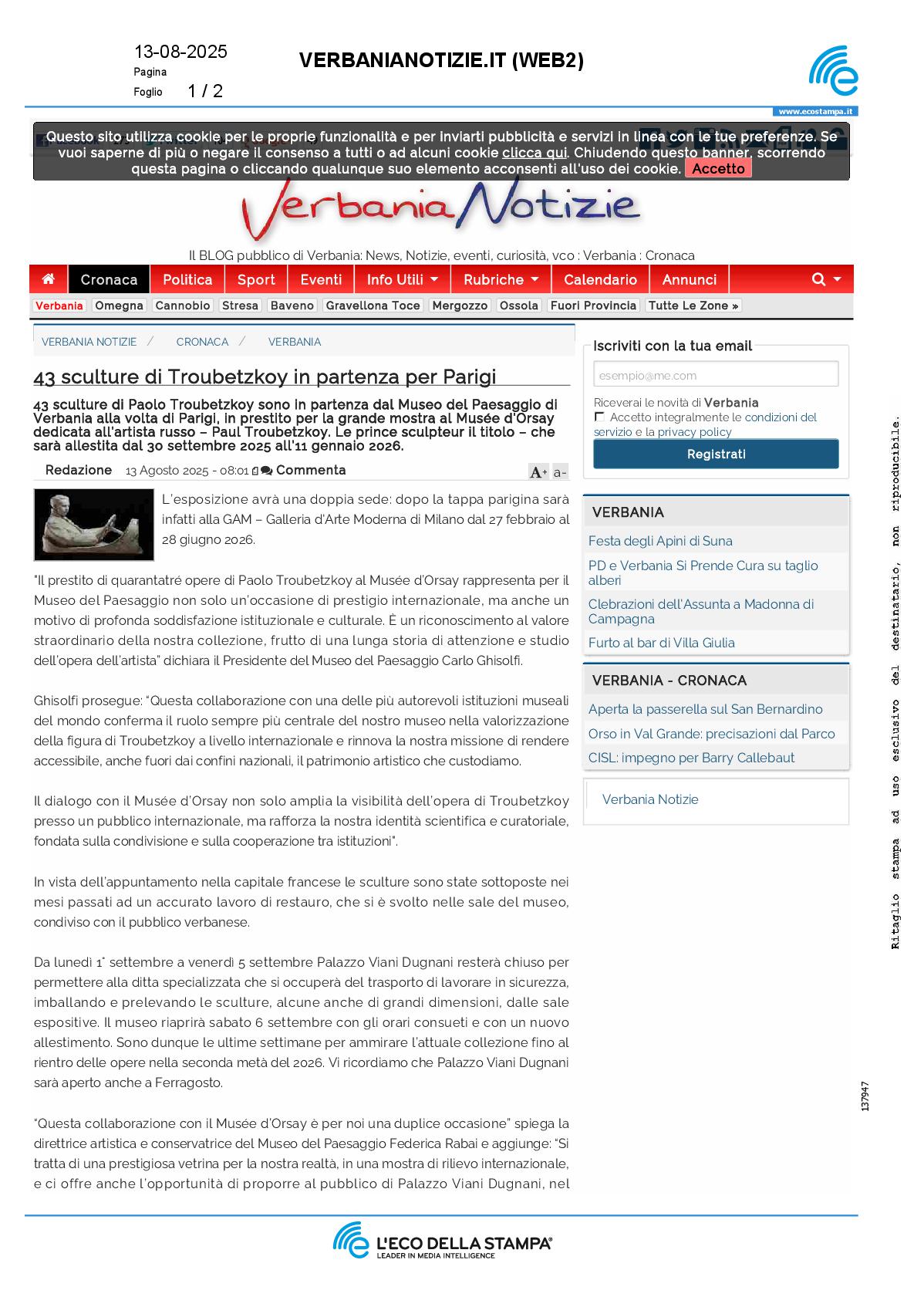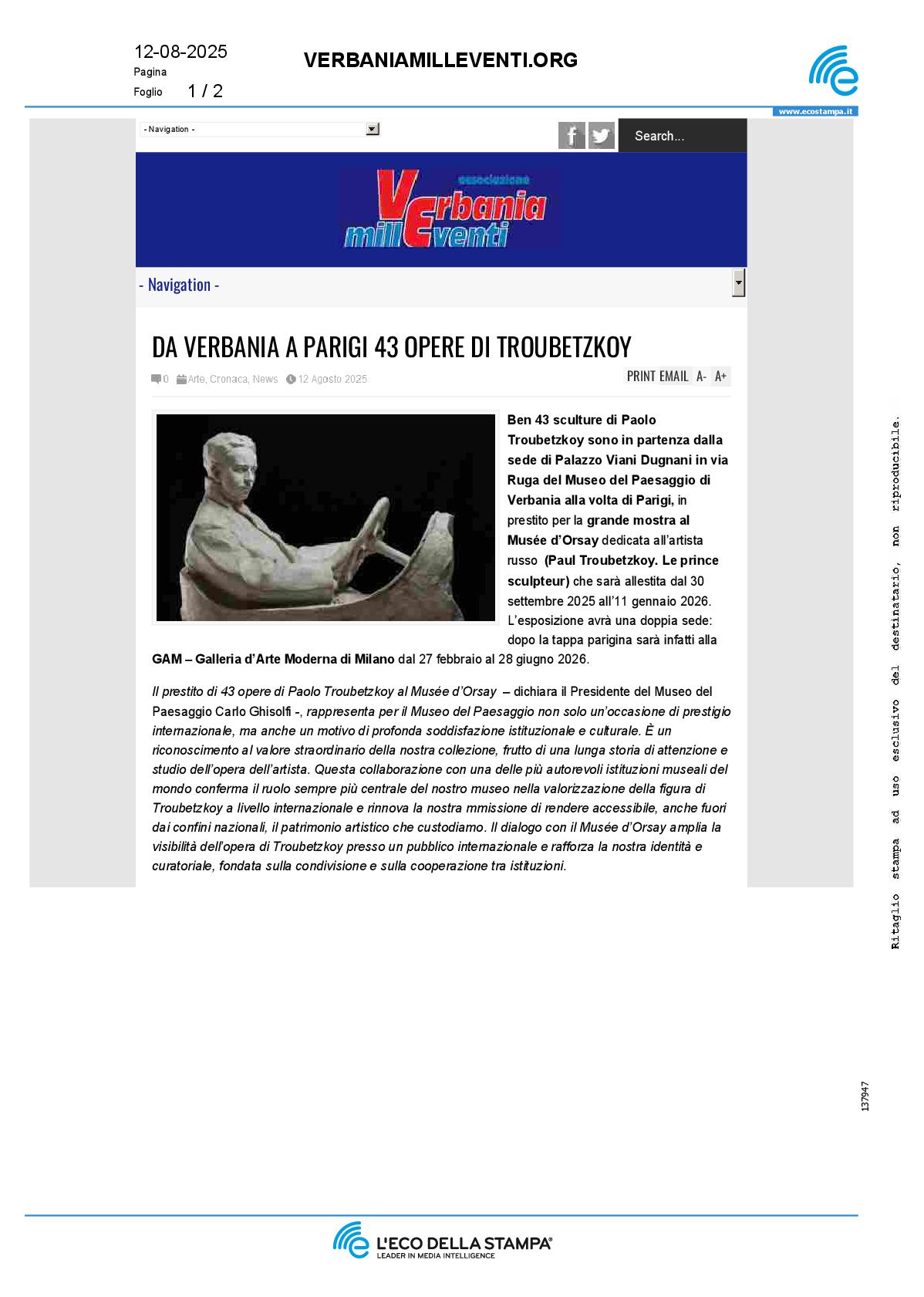 Troubetzkoy è partito dal Museo del Paesaggio di Verbania per la grande mostra al Museo d’Orsay di Parigi