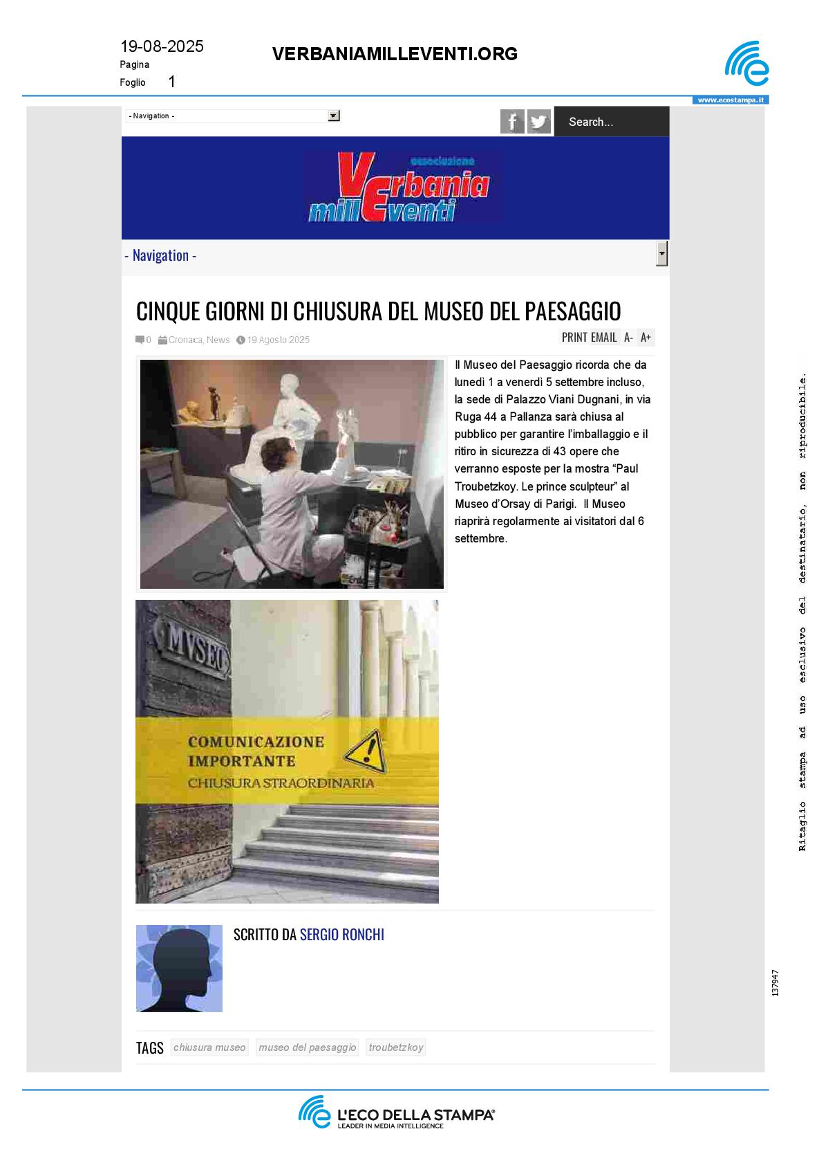 Tel. +39 Sede espositiva 0323.502254 - Uffici 0323.557116