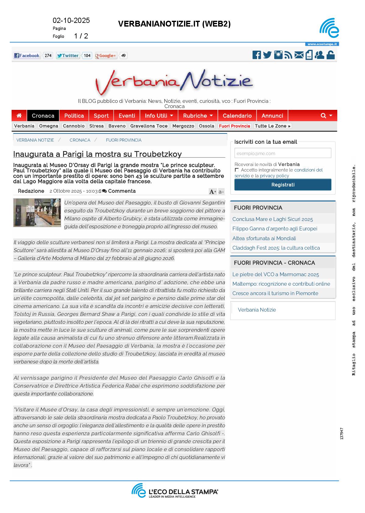 Troubetzkoy unter dem Himmel der Impressionisten: Verbania im Musée d’Orsay
